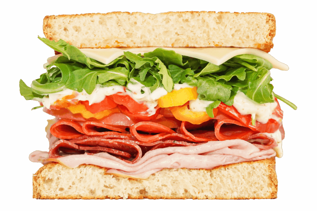Pepperoni, Salami, Ham, Swiss, Arugula, Tomato, Banana Peppers, Zesty Italian Mayo